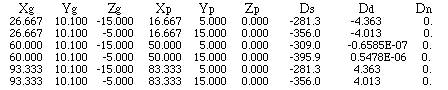 Results are to be output to a plane in only xyz format and in global coordinates. Four types of results will be calculated, displacements on the inspection plane (see below for details of the inspection plane), displacements across each of the subelements, and components of the strain and stress tensor on the inspection plane. Result files will be identified by their suffix .out.