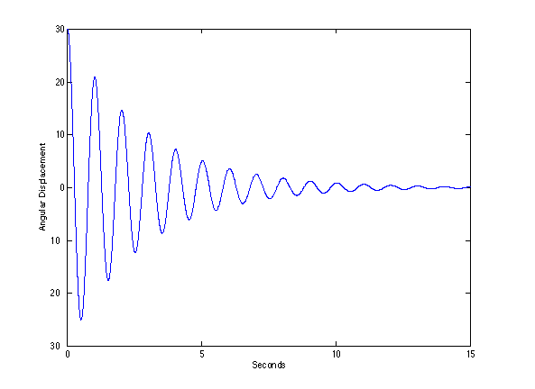 Figure The animation shows the motion for a simple damped (non-driven) pendulum with an initial angular displacement of 30 degrees.