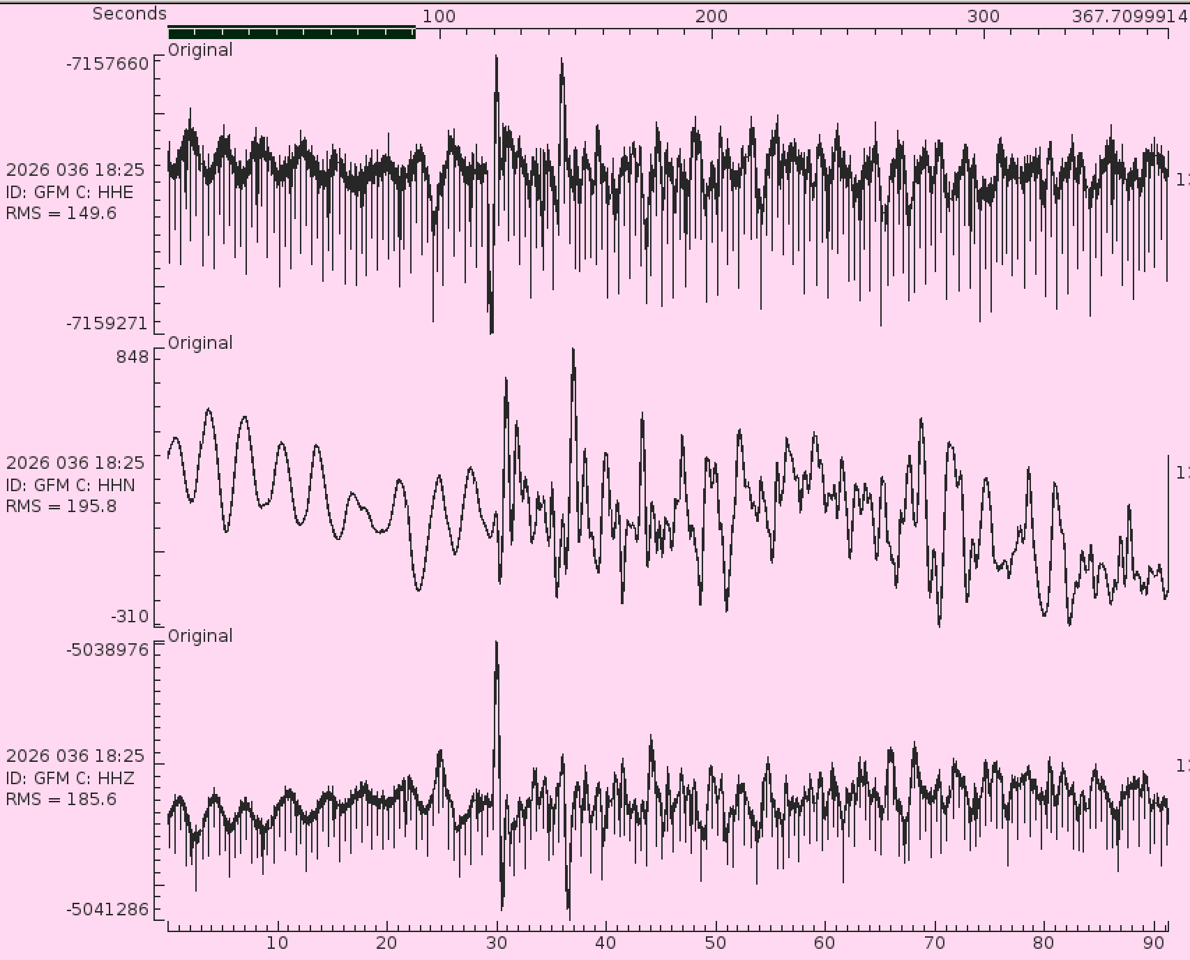 GFM.HH* &.HN* -daily dropouts, U component locked w/ 3.8 v offset.